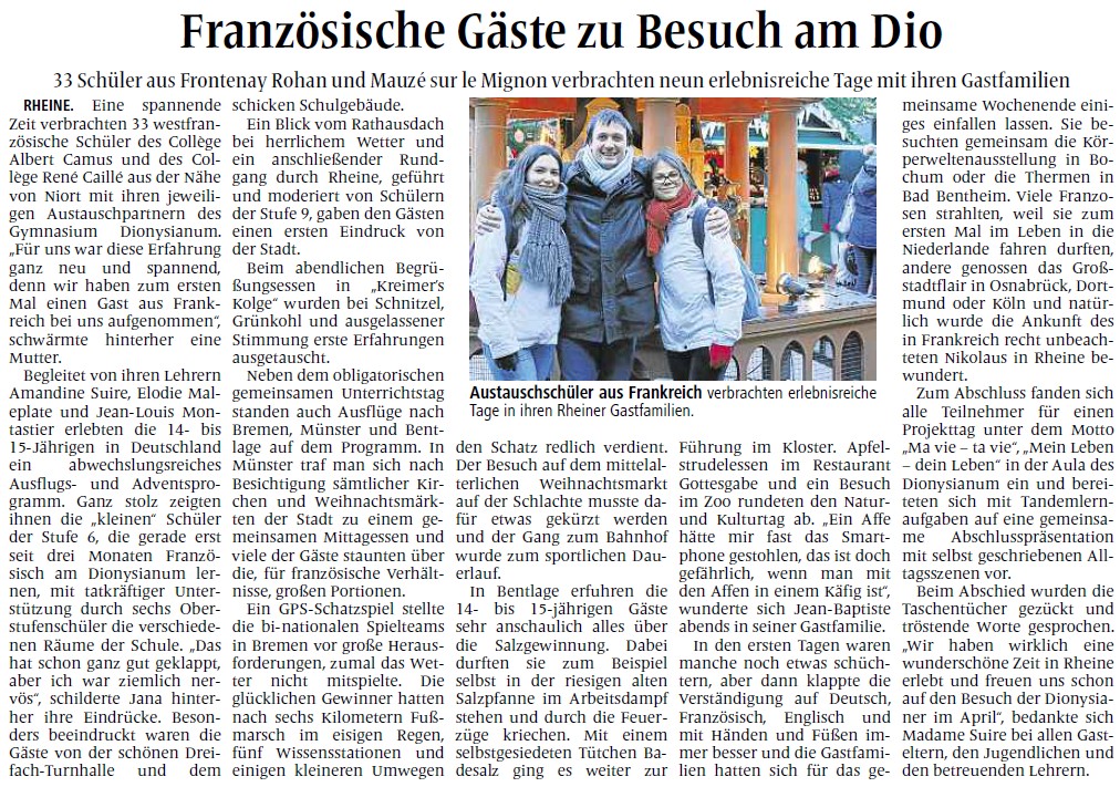 Tags: FREMDSPRACHEN - Austausche am Gymnasium Dionysianum Rheine - Fordern / fachliches Lernen / bilinguale Module / Europa, Klassen- und Studienfahrten am Dionysianum - soziales Lernen, MV: Münsterländische Volkszeitung, © Altmeppen Verlag GmbH & Co. KG , alle Rechte vorbehalten., EUROPA am Dionysianum