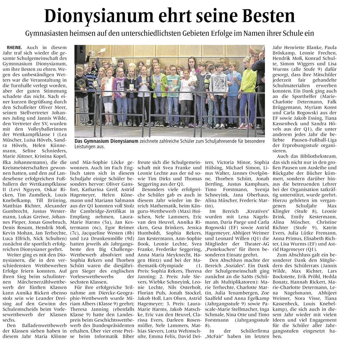 MV 01.07.2015 Ehrungen zum Schuljahresende