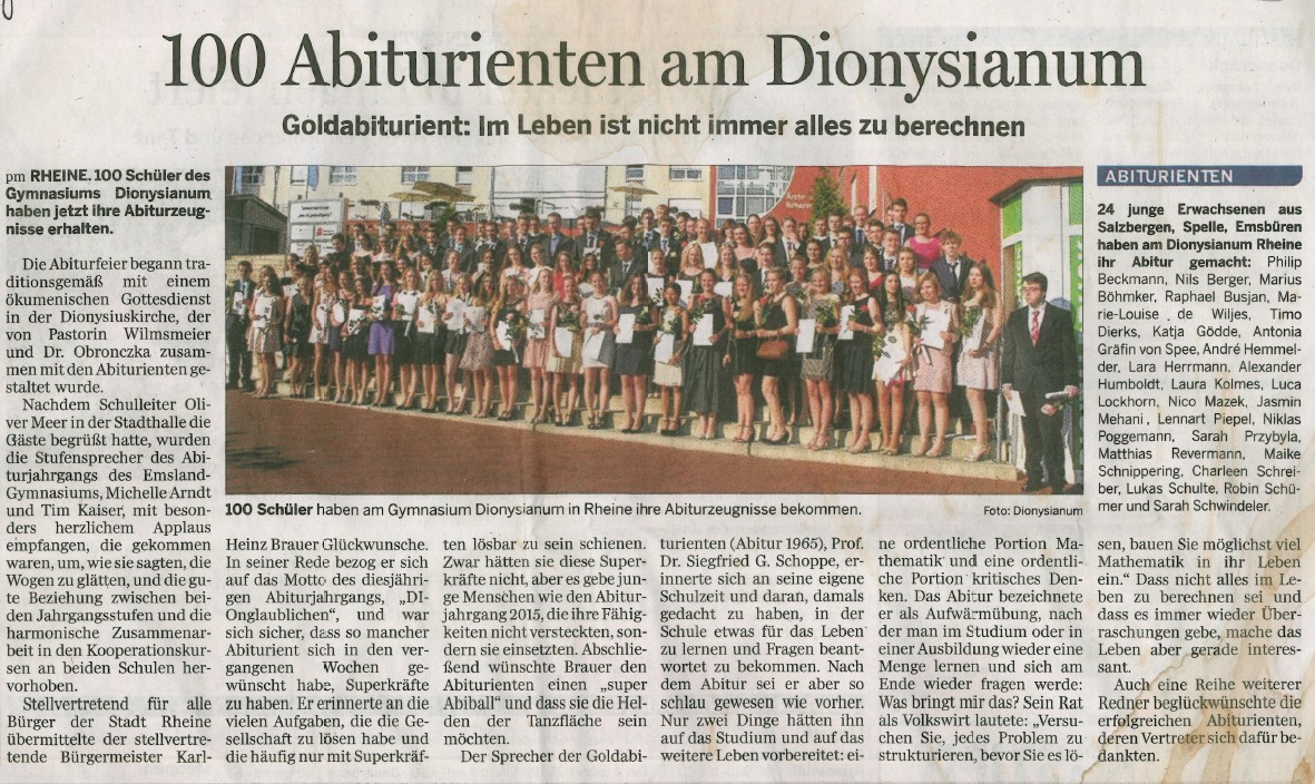 Lingener Tagespost 16.06.2015 Abiturienten aus Salzbergen Verfasst am 19. Juni 2015. Anhänge: 2015-06-16 Lingener Tagespost - 100 Abiturienten.jpg[ ]355 kB Weiter