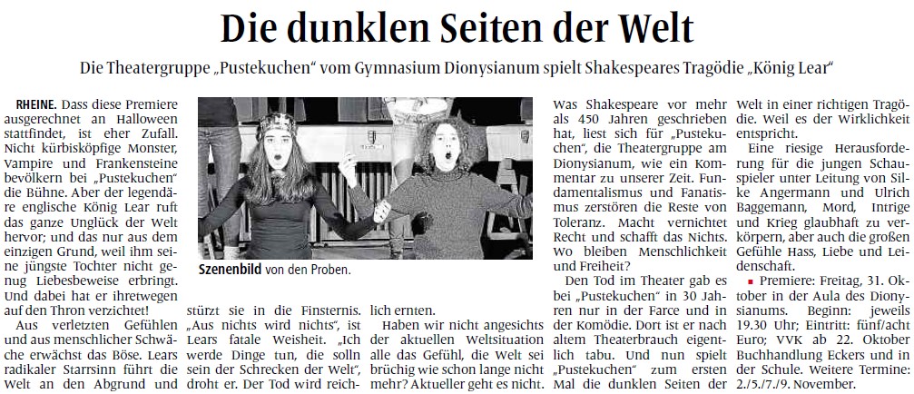 MV 25.09.2014 Theater-AG Pustekuchen - Die dunklen Seiten der Welt Verfasst am 26. September 2014. Anhänge: 2014-09-26 MV Pustekuchen - Die dunklen Seiten der Welt gr.jpg[ ]214 kB Tags: Theater am Dionysianum - soziales Lernen Zurück Weiter